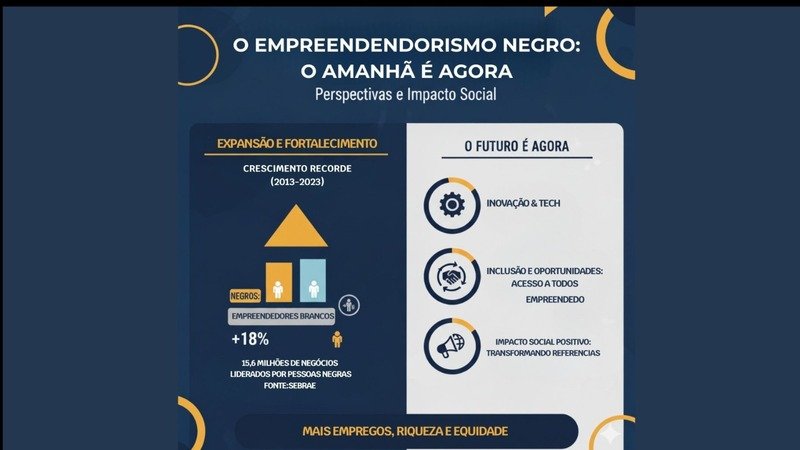 O futuro do empreendedorismo negro no Brasil é de expansão e fortalecimento. Relatórios do SEBRAE indicam que, nos próximos anos, negócios liderados por negros terão papel ainda mais relevante na economia digital. O movimento seguirá crescendo com inovação, inclusão e maior circulação de recursos dentro da própria comunidade.