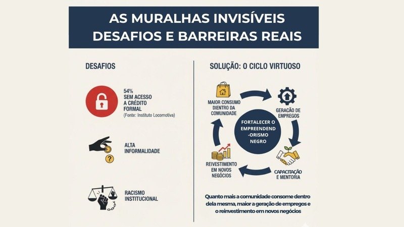 Apesar dos avanços, os desafios ainda são grandes. Uma pesquisa do Instituto Locomotiva revelou que 54% dos empreendedores negros não têm acesso a crédito formal. Além disso, a informalidade é alta e o racismo institucional segue sendo um obstáculo.